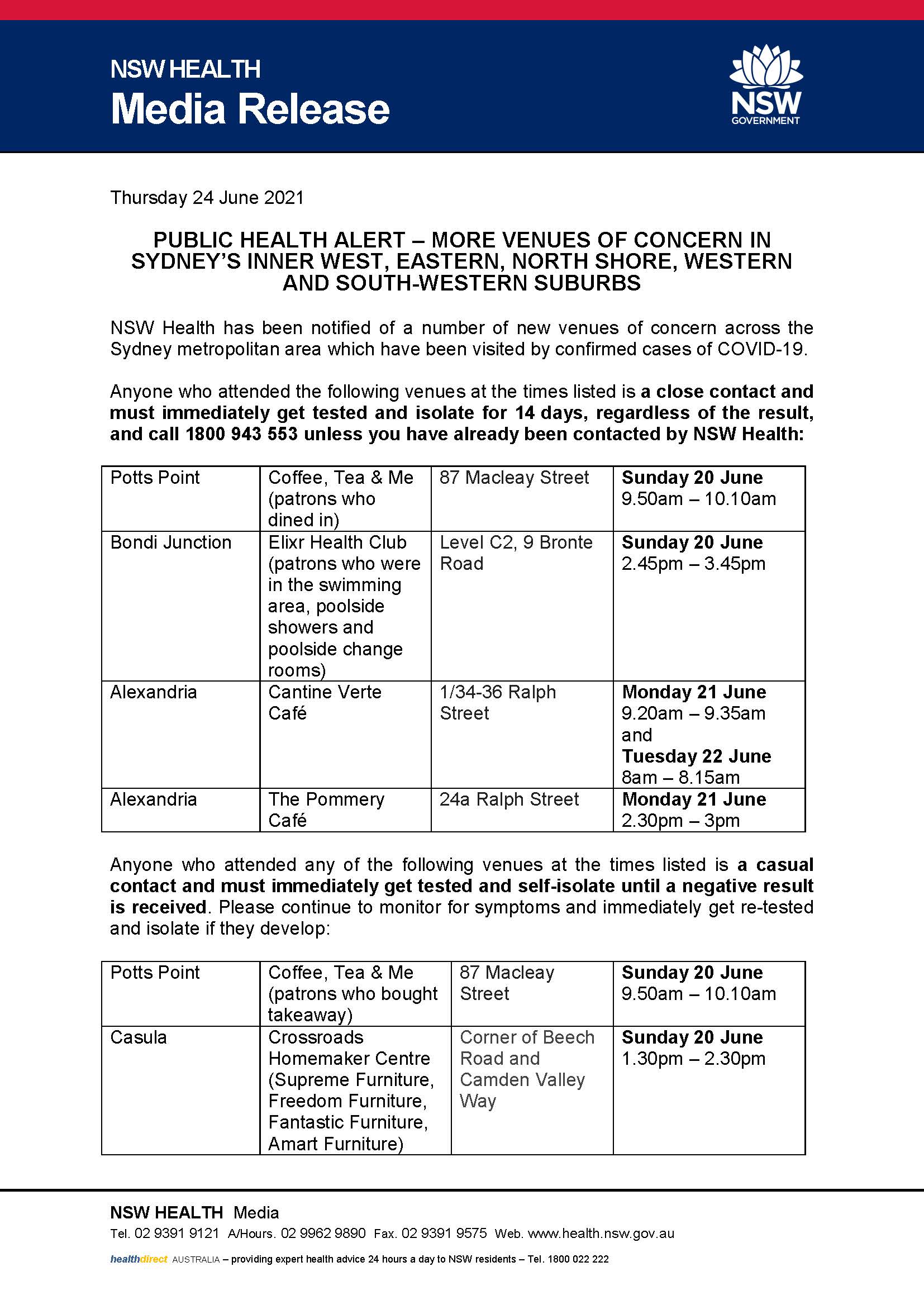 Nsw Health On Twitter Public Health Alert More Venues Of Concern In Sydney S Inner West Eastern North Shore Western And South Western Suburbs Https T Co U95trmhmnx
