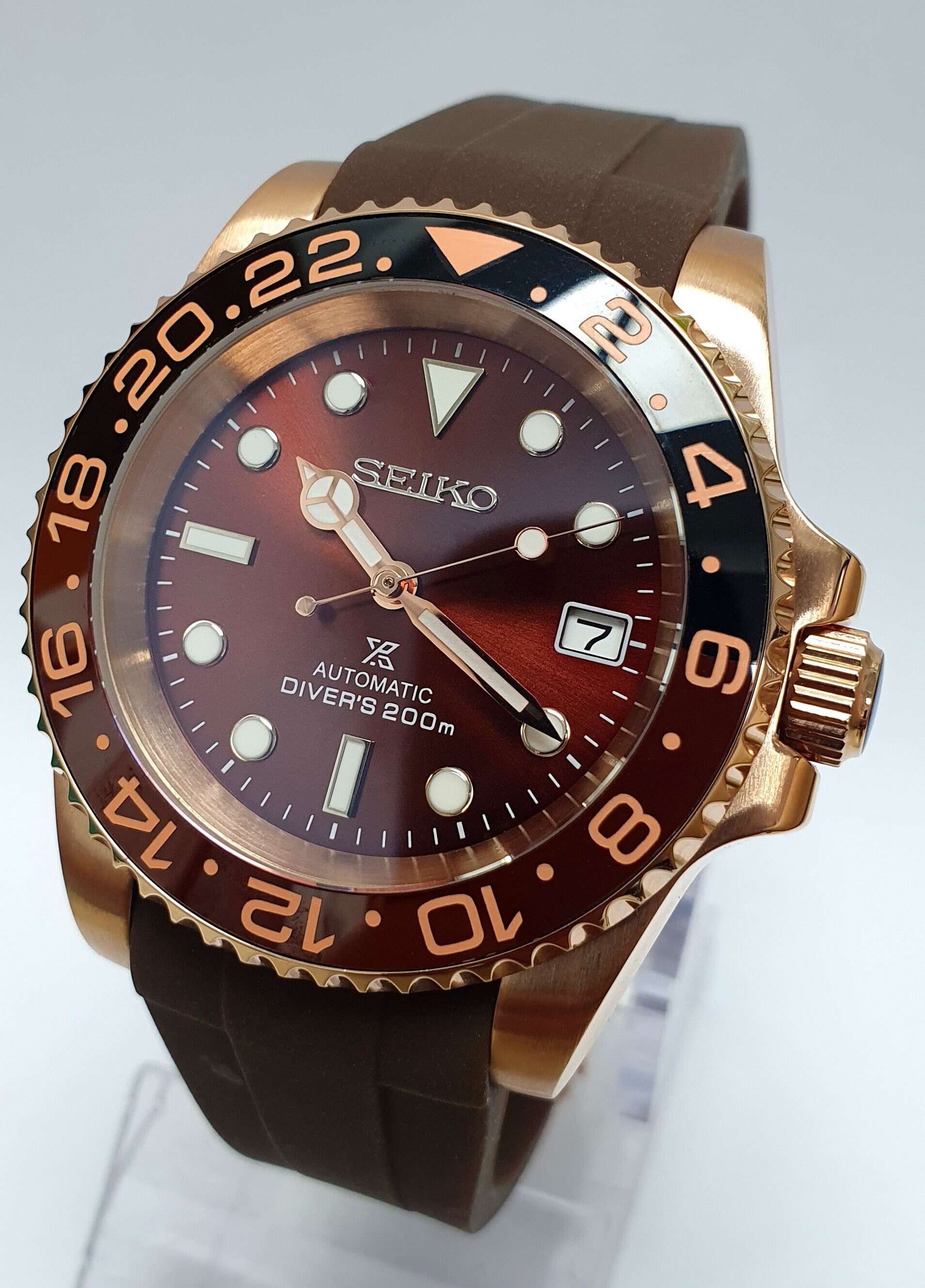 Custom Submariner Divers Watch Seiko Nh36 Root Beer Mod Etsy